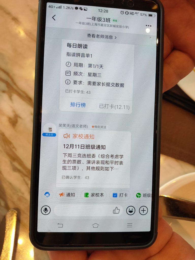 その小学校は実験小学校と言って、嘉定区の中でも先進的な教育をされている学校なようで、その学校に通うために近くのマンションを買う人がいるくらいです。(学区房と呼ばれます。)この小学校は今年できたばかりで、彼の娘が最初の1年生です。
